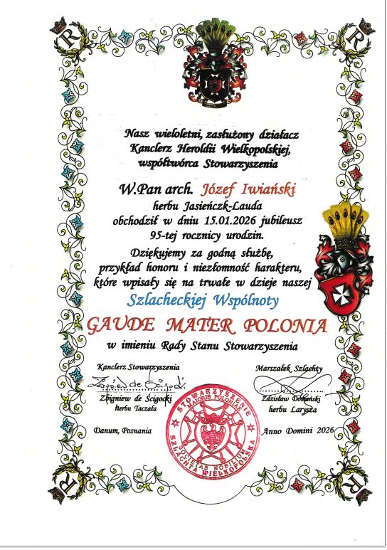 W.Pan arch. Józef Iwiański obchodził 95. rocznicę urodzin. Zdrowia i pomyślności Czcigodny Jubilacie! Opublikowany 21 stycznia 2026 przez Redaktor
